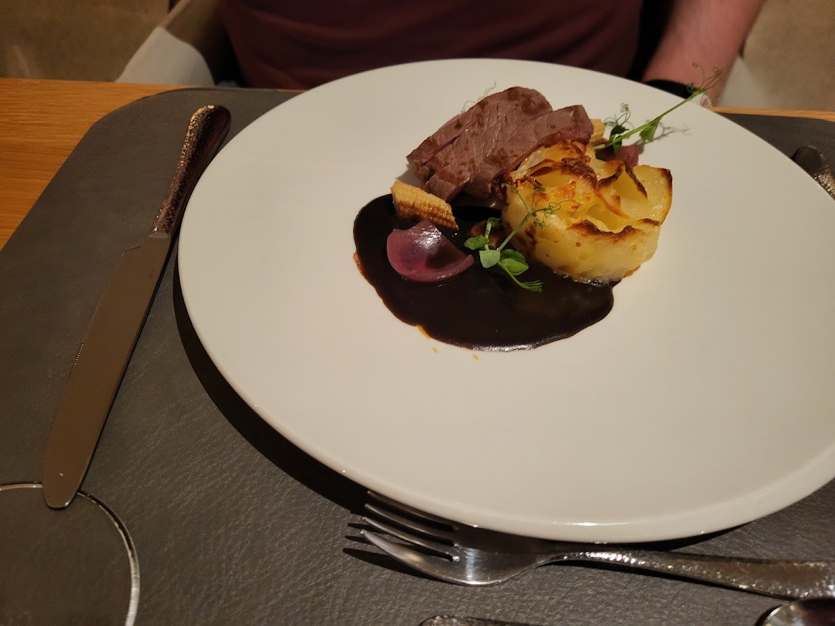 Sehr leckeres und schön angerichtetes Essen. Service wirklich sehr aufmerksam. Meiner frau war schlecht und musste aufs Zimmer, daraufhin wurde uns direkt angeboten das Essen aufs zimmer zu bekommen. Wirklich sehr nett und aufmerksam. Toll!